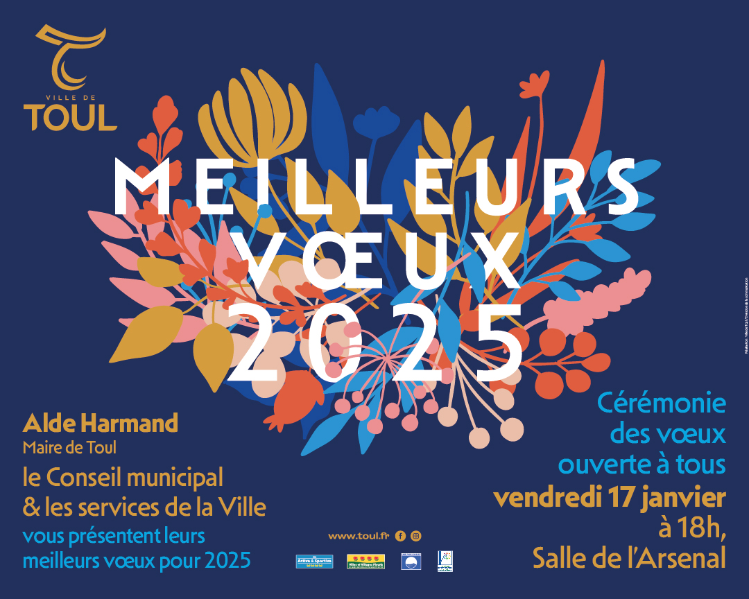La cérémonie des vœux, aux habitants de la ville de Toul, se tiendra à la salle de l’Arsenal, le vendredi 17 janvier 2025, à 18h.
