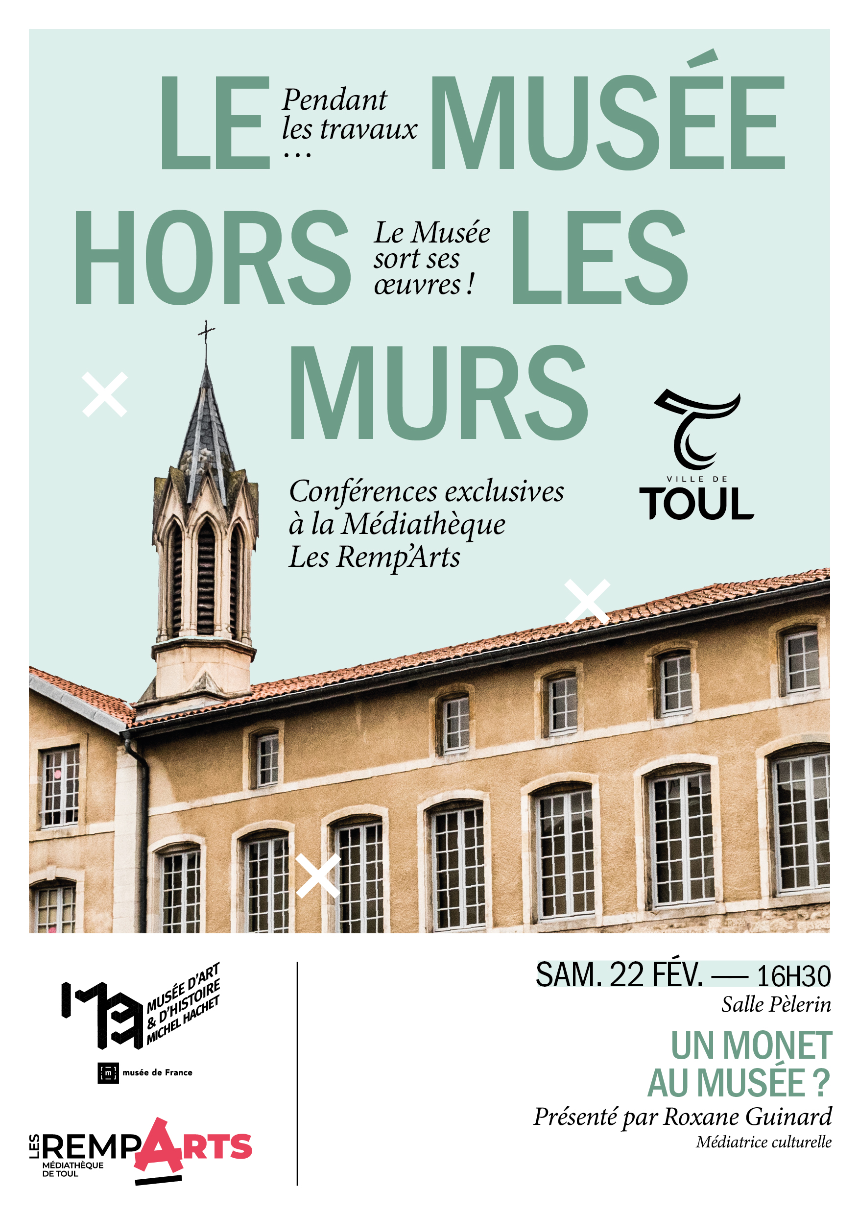 Durant la période de travaux du musée d’art et d’histoire Michel Hachet, trois œuvres majeures seront exposées à la médiathèque Les Remp’Arts. Chaque œuvre fera l’objet d’une conférence d’une heure, ouverte à tous !