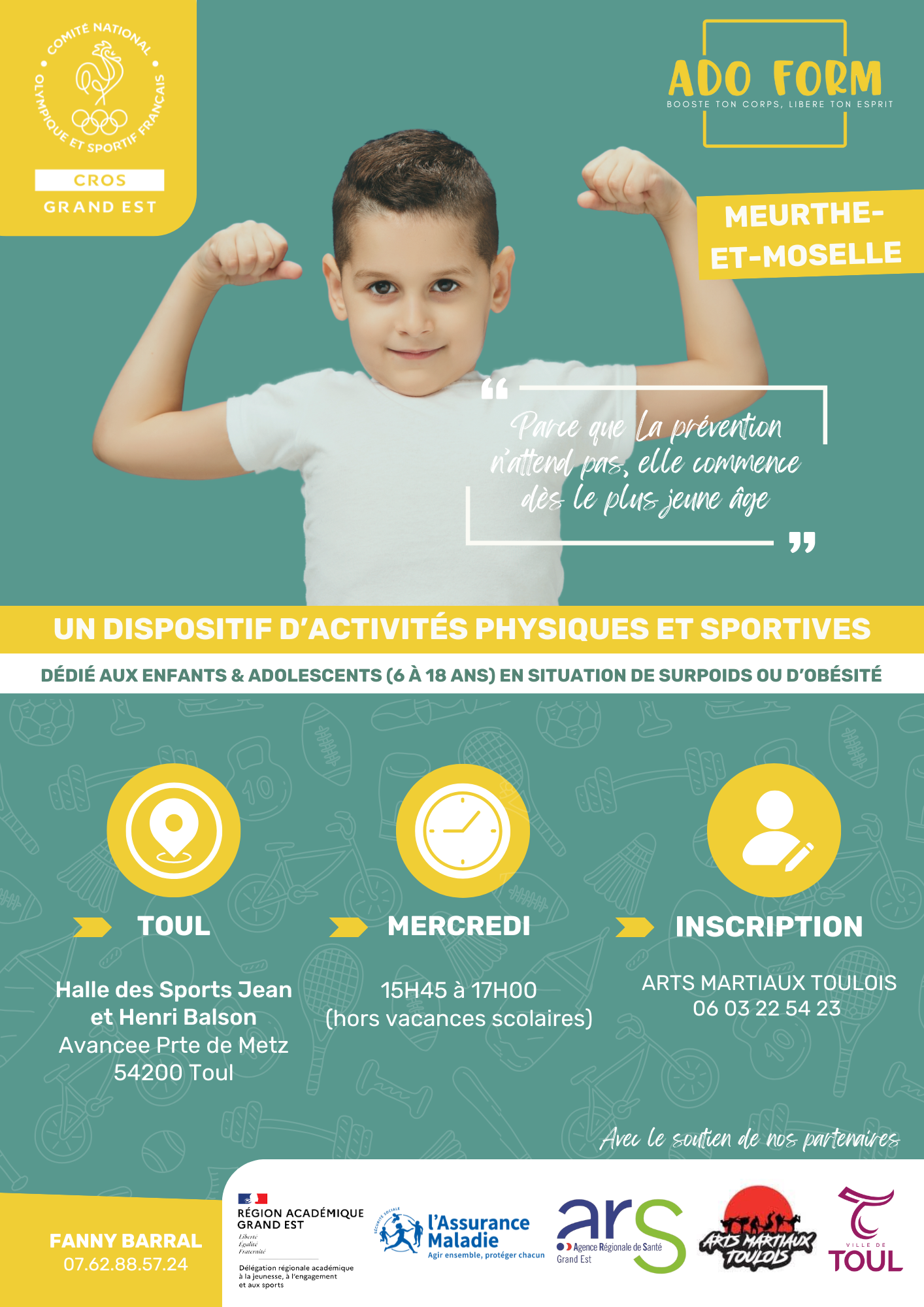 DISPOSITIF D’ACTIVITÉS PHYSIQUES ET SPORTIVES DÉDIÉ AUX ENFANTS & ADOLESCENTS (6 À 18 ANS) EN SITUATION DE SURPOIDS OU D’OBÉSITÉ se tiendra chaque semaine en période scolaire, le mercredi de 16h00 à 17h00, à la Halle des Sports Jean & Henri Balson.