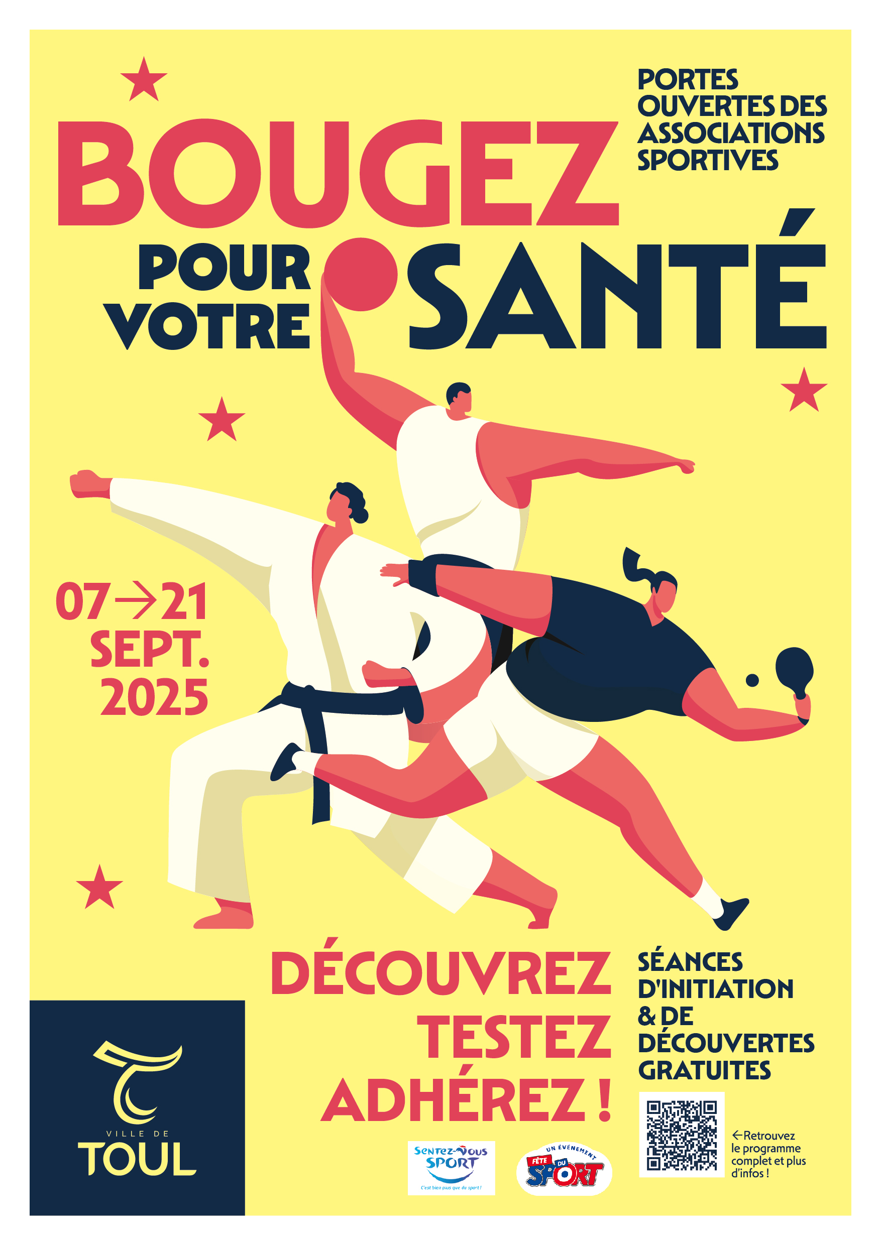 Du 7 au 21 septembre 2025, dans le cadre de la Fête du Sport, les associations vous proposent des séances d’initiation et de découvertes gratuites :