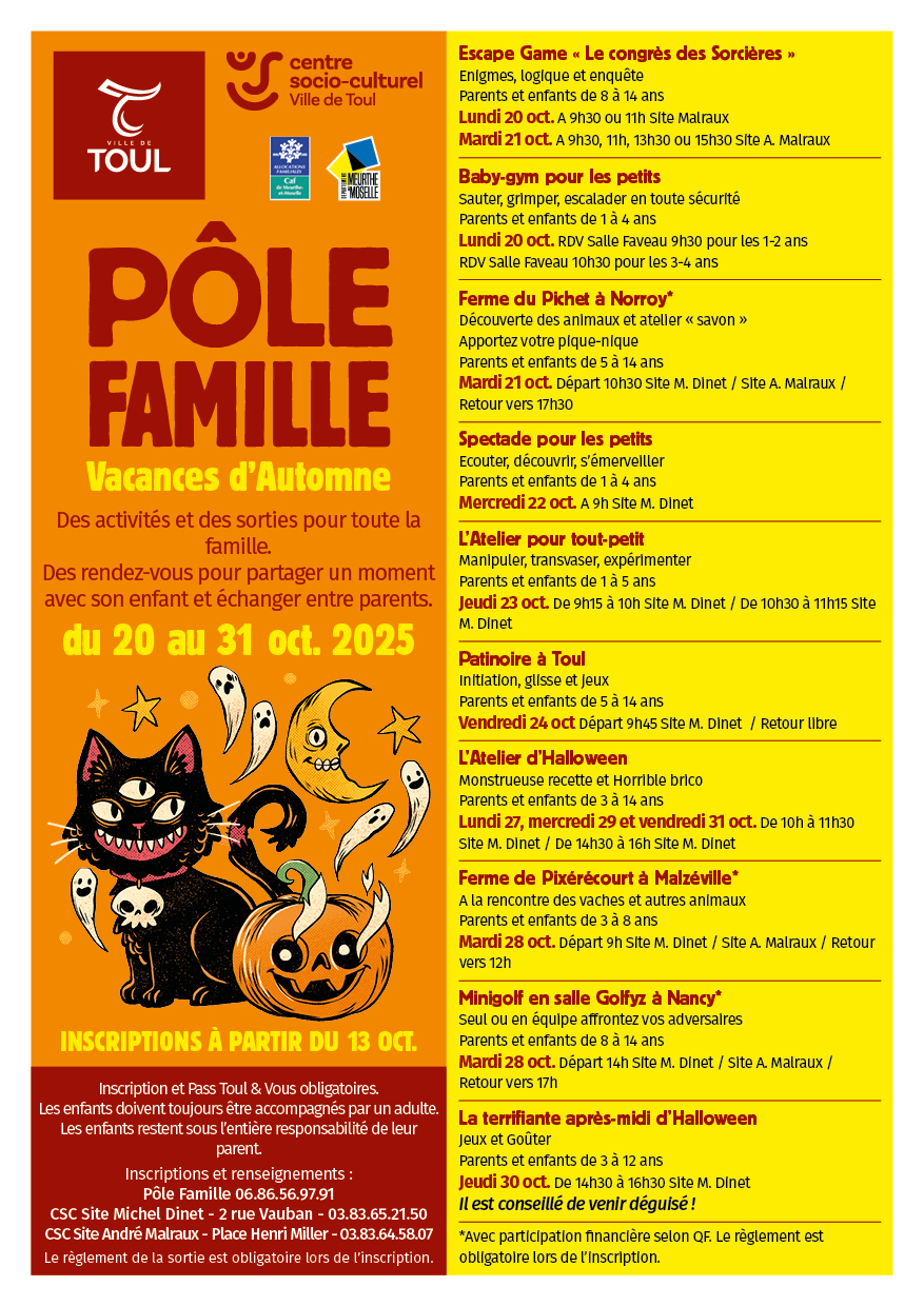 *Avec participation financière selon QF. Le règlement est obligatoire lors de l’inscription.
