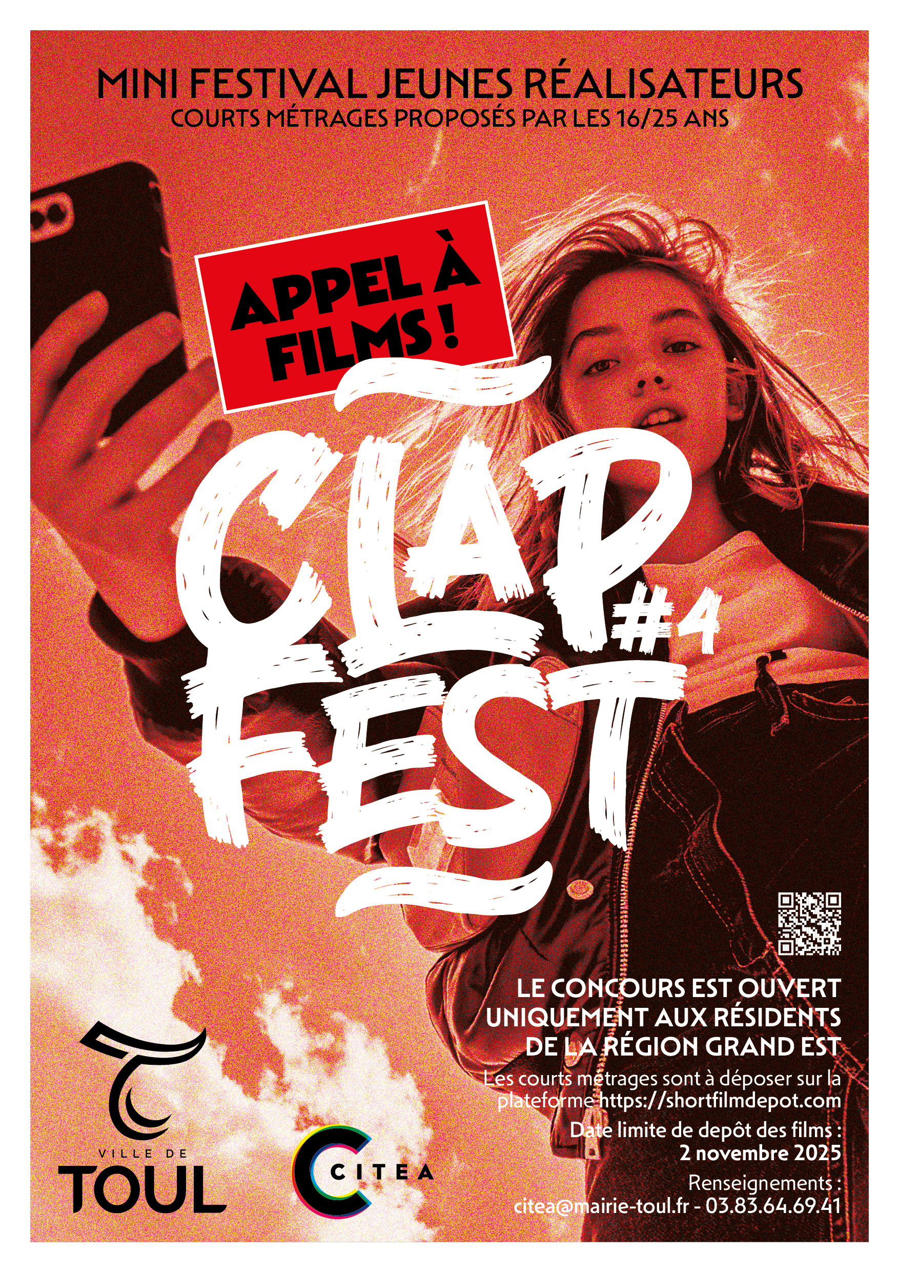 La Ville de Toul organise la 4ème édition du CLAP’FEST – Mini Festival des Jeunes Réalisateurs, qui se tiendra le dimanche 23 novembre 2025 à CITEA