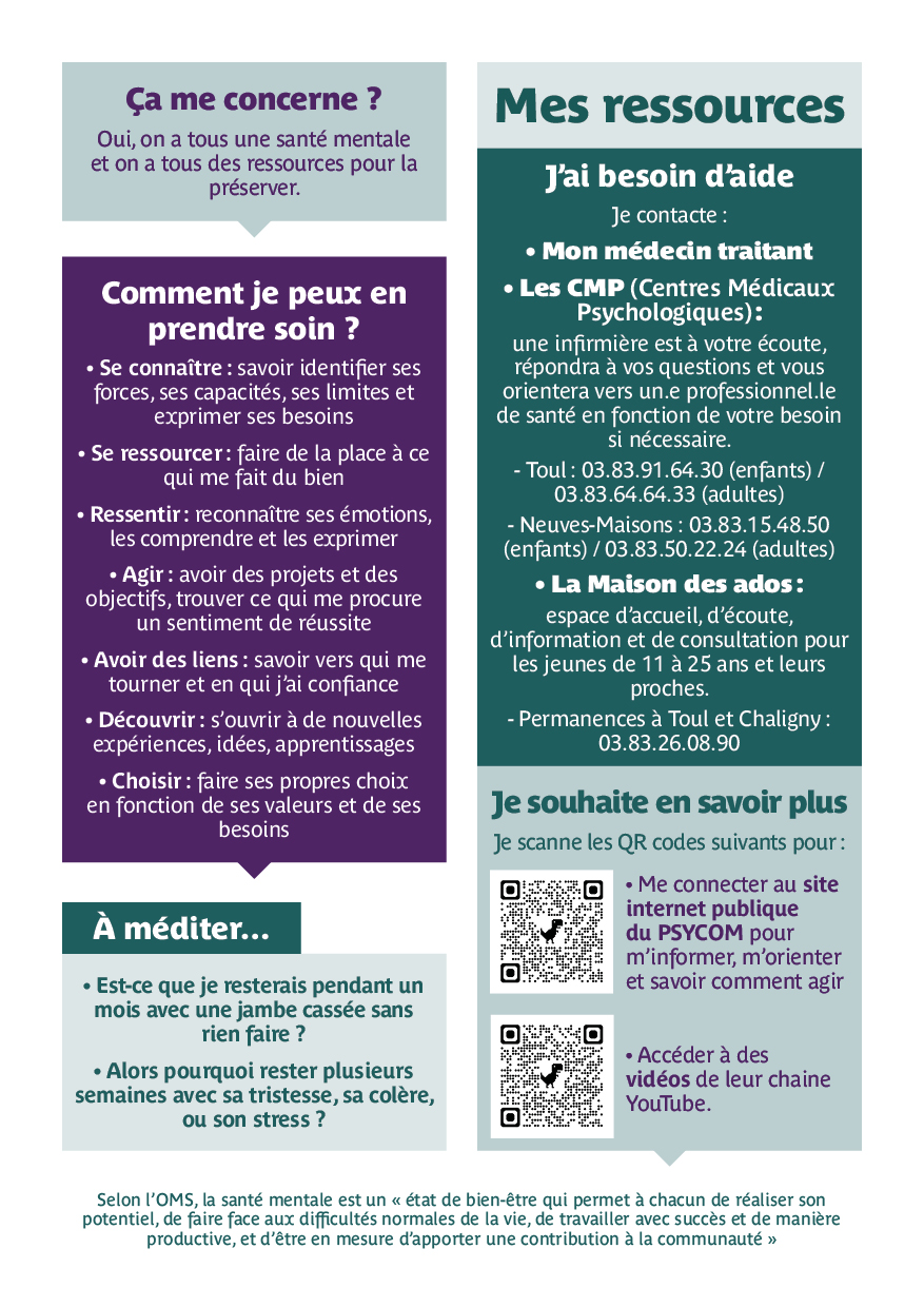 • La santé mentale peut évoluer pendant la journée en fonction des aléas de la vie quotidienne et c’est normal !